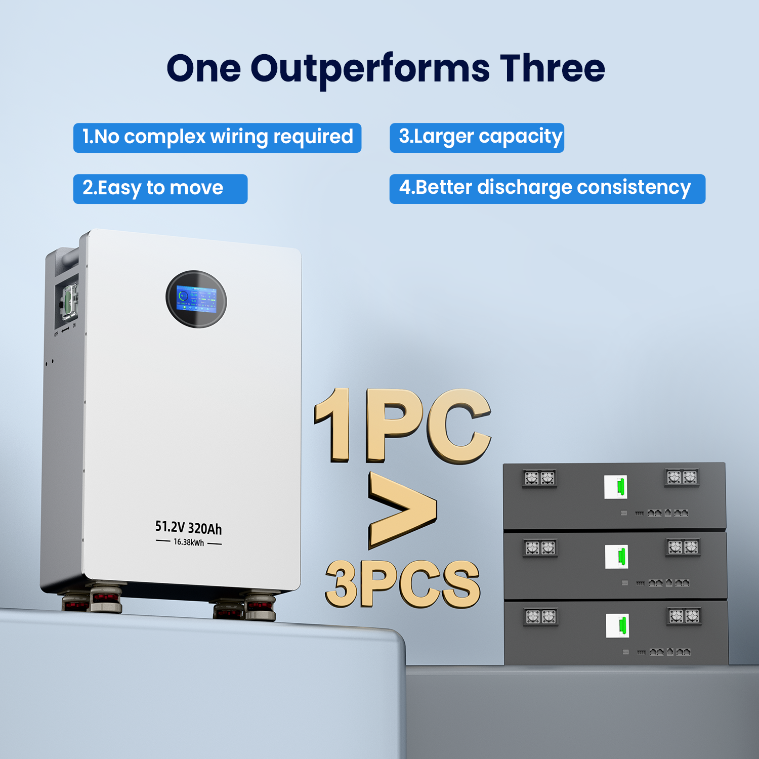 High Capacity, Space-Saving Design: With a massive 16.4 kWh of storage in a compact form, this battery powers your essential systems without taking up extra space. Need more energy? Connect up to 15 units in parallel for up to 246 kWh—ideal for whole-home backup, solar storage, or off-grid setups.